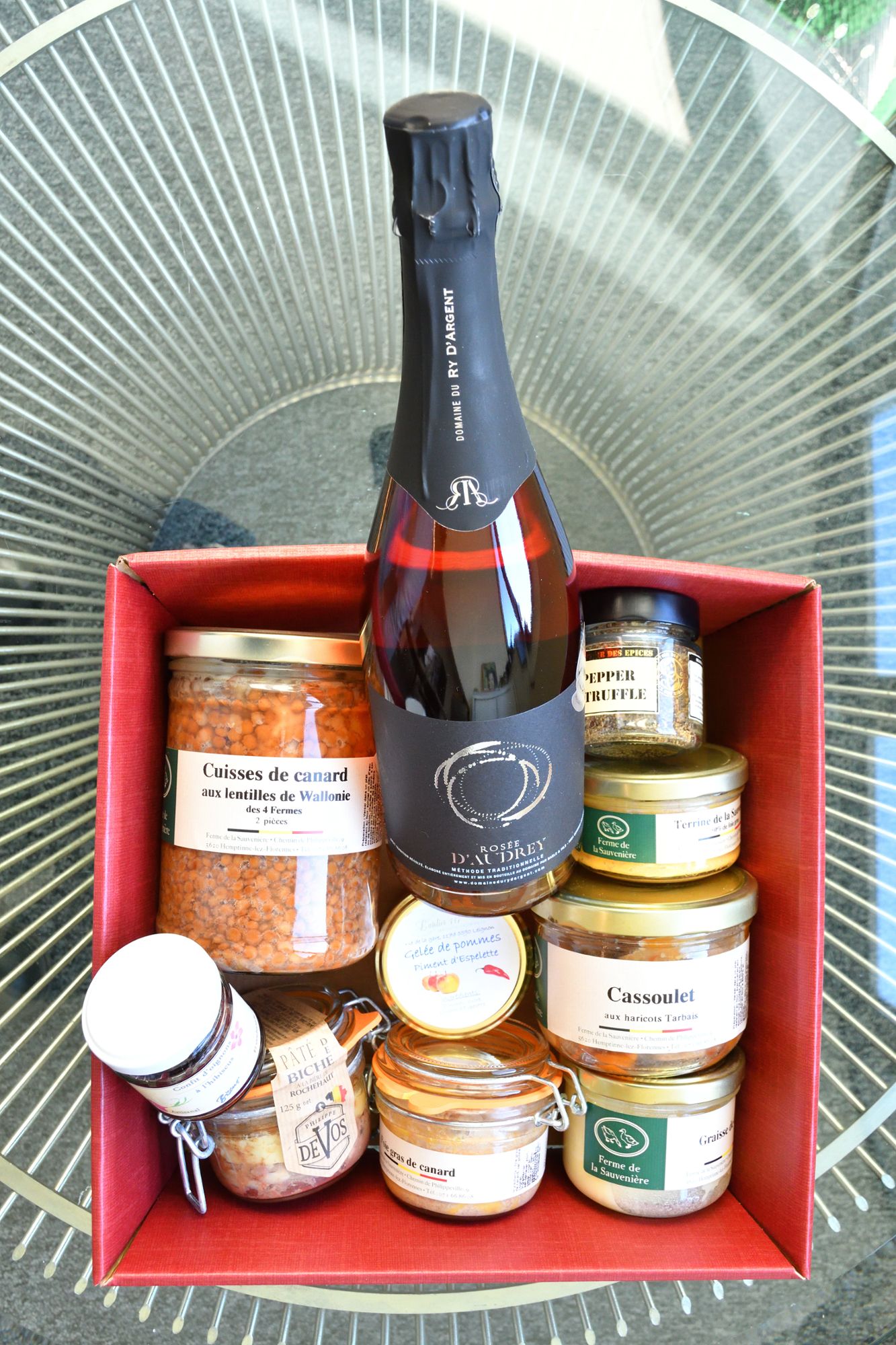 UN DES 10 PANIERS GOURMANDS "FOIE GRAS" GARNIS DE PRODUITS LOCAUX (VALEUR 90€)